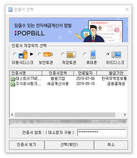[참고] 전자세금계산서용 공인인증서 신규 발급절차 안내 : https://blog.naver.com/popbill/220993308863