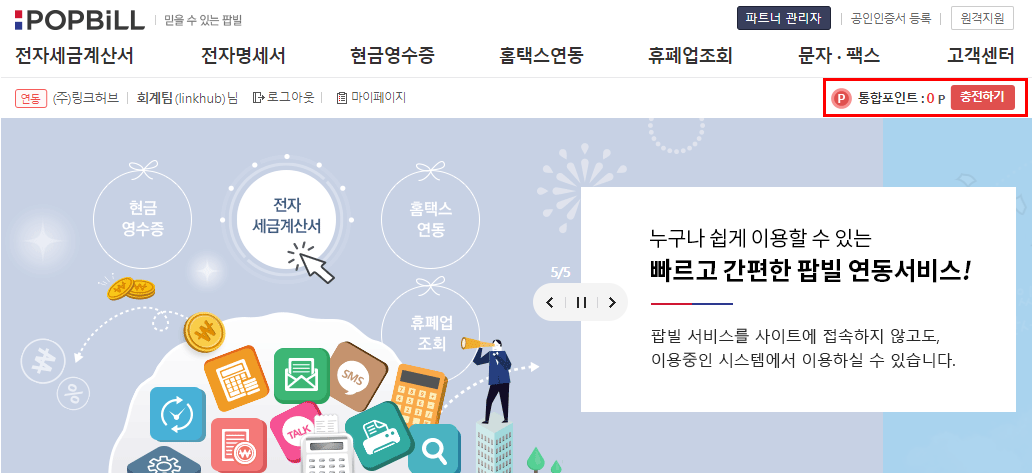 [참고] 팝빌 회원 포인트 결제 방법 안내 : https://blog.naver.com/popbill/221131018225